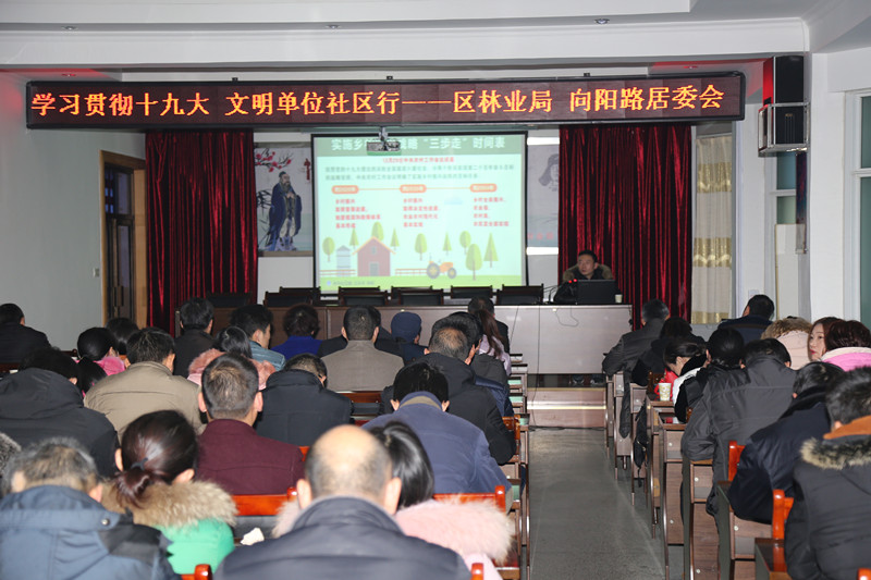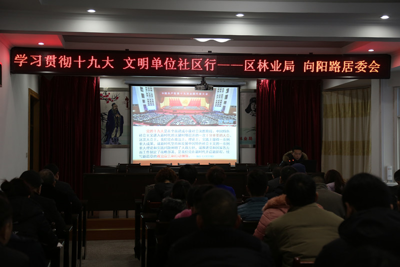 为进一步强化单位与社区的横向联系,对党的十九大精神进行更广泛、更深刻的宣讲,提升广大党员群众的自豪感和自信心。1月18日下午,365bet体育在线导航、平桥办事处向阳路居委会携手开展了"学习贯彻十九大 文明单位社区行"宣讲活动,社区群众代表及区林业局党员干部70余人参加了学习活动。